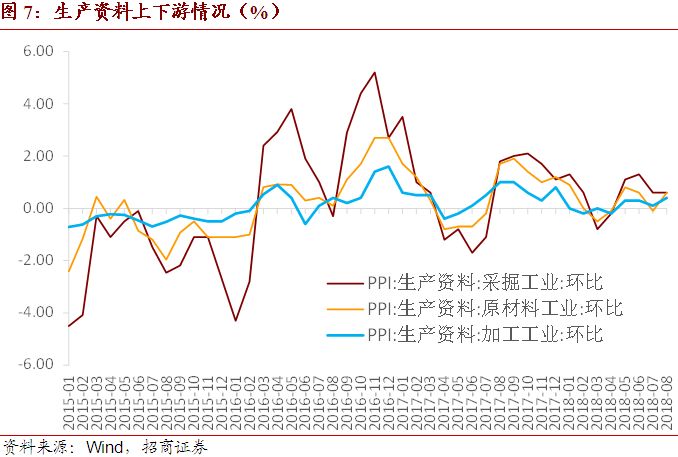2、8月PPI同比增速回落0.5个百分点至4.1%完全符合我们的预测,但小幅高于市场一致预期4.0%,供给逻辑仍是主导。PPI环比涨幅扩大0.3个百分点至0.4%。生产资料上游采掘工业价格环比持平0.6%,中下游原材料与加工工业价格环比分别抬升至0.6%、0.4%。生活资料价格环比小幅抬升至0.3%。分行业来看,石化相关与黑色系表现较为强势,环比涨幅扩张居前的行业包括化学纤维制造业、黑色金属冶炼及压延加工业、黑色金属矿采选业、石油加工业,环比涨幅分别抬升1.7、1.6、1.6、0.8个百分点,8月环比分别上涨2.0%、2.1%、1.8%、1.7%。