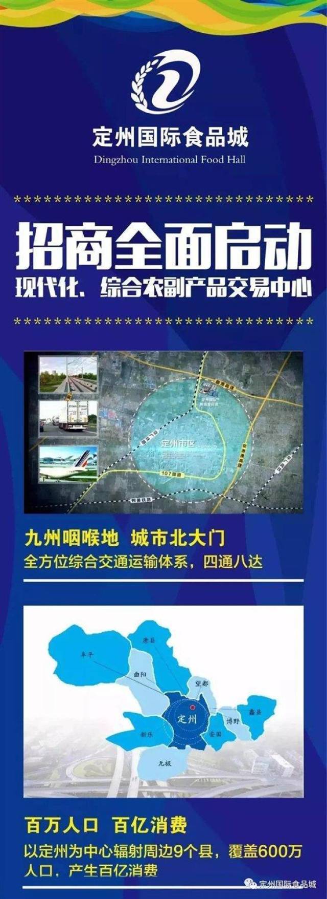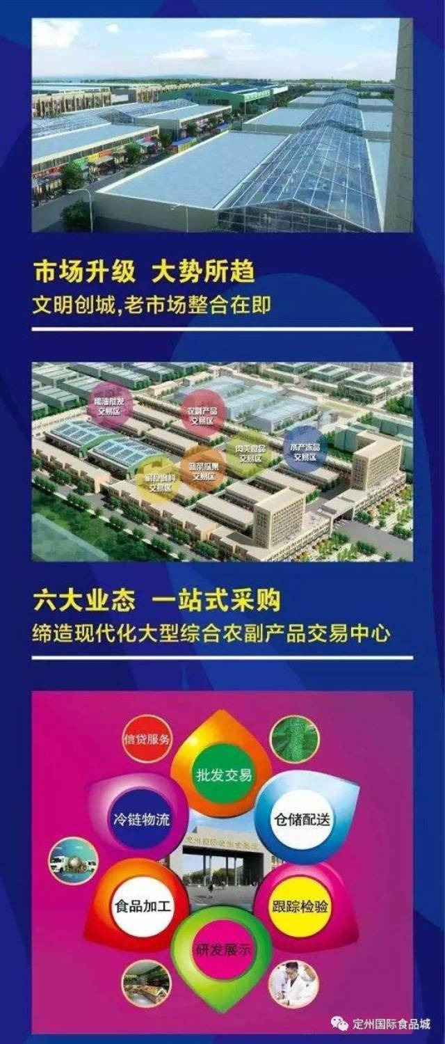 据悉定州国际食品城一期预计2018年投入运营,运营后将弥补本地一体化市场无现代大型综合交易中心的空白,引领定州农副产品行业新发展,提升整体行业竞争力。