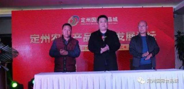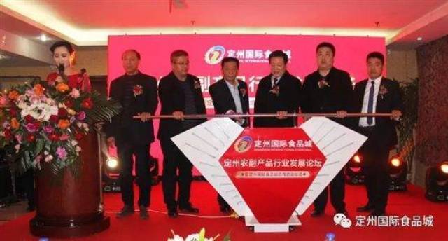 活动就中国商业市场发展变迁、中国农产品批发历程、行业发展现状、未来行业发展趋势进行探讨。会中河北商品交易市场联合会会长何连海、河北商品交易市场联合会副会长鲁喜泉、京津地产董事长代跃峰、京津地产总经理金新元、定州国际食品城招商总监高南星、定州市军粮供应有限责任公司董事长彭谦共同启动定州国际食品城招商活动。