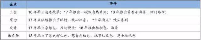目前我国速冻面米行业主要集中在水饺、汤圆等传统产品,品种结构较为单一。安井食品等企业聚焦速冻面点领域,近年来不断推出手抓饼、核桃包、油条等面点新品种,三全、思念等传统企业也不断开发包子、蒸蛋糕等品类。