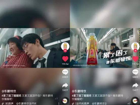 作为瓶装能量饮料第一品牌,东鹏特饮已经成长为销售规模超50亿的行业巨头,成功走出了具备本土特色的发展道路,营销创新方面尤其值得一书。今年东鹏特饮联合抖音发起以#累了困了醒醒吧#为主题的创意视频大赛,话题视频浏览量突破51亿,参与视频数达48万,点赞数突破7500万,对于品牌势能的释放起到极大推动作用。
