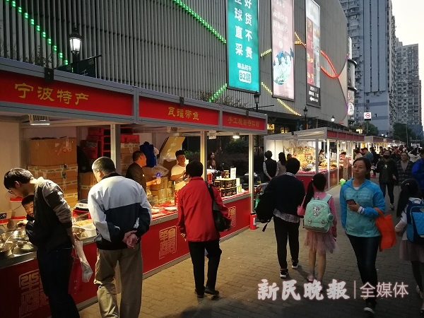 图说:陆家浜路人行道上正在举办食品展销会 新民晚报记者 房浩 摄(下同)
