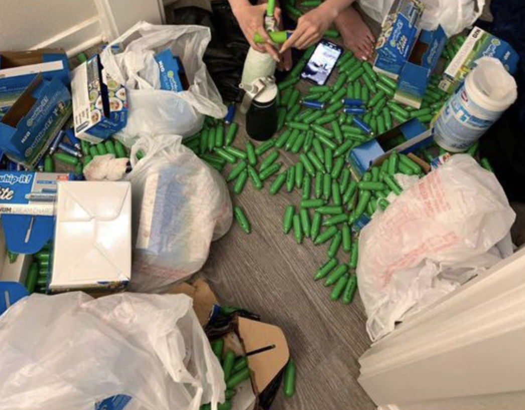 流传的图片里能看到,确实有不少笑气弹。