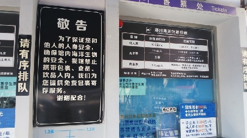 郑州海洋馆售票处的禁带食品饮料警示。耿记安/摄