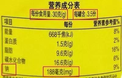 有些产品知道自己的营养成分表数据太难看,它们会想方设法地“伪装”成看起来不那么扎眼的数据,这就是营养成分表的常见“猫腻”之一。也是消费者最容易忽视的地方。